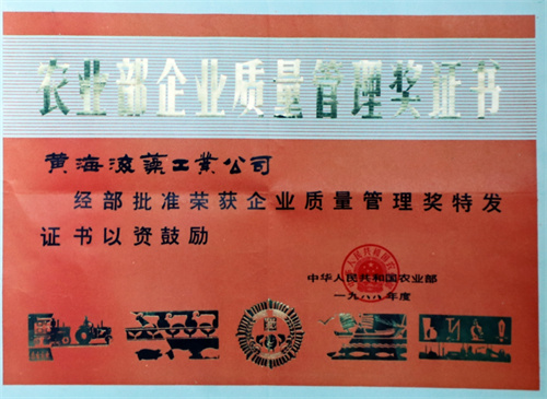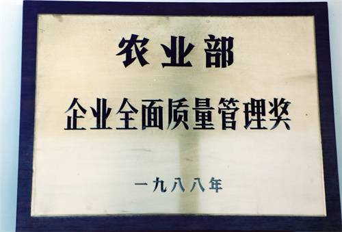 1988年10月獲得國家農業部全面質量管理獎。