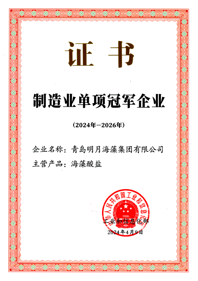 1985年10月,明月牌褐藻酸鈉被評為山東省優質產品。1987年,明月牌褐藻酸被評為山東省優質產品。