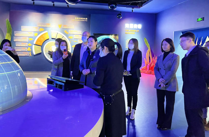 青島金圃廣源科技有限公司領導一行在青島明月海藻生物健康科技集團副總裁孫占一的帶領下參觀明月海藻世界及中國海藻科技館。