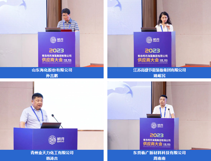 山東海化股份有限公司孫言鵬、江蘇高捷節能裝備集團有限公司姚岷民、青州金天力化工有限公司韓濤吉、東營臨廣新材料科技有限公司周南南幾位供應商代表上臺分享“他們和明月的故事”。通過他們的講述,讓大家全方位、多角度地了解了一個充滿情懷與溫度的多彩明月。