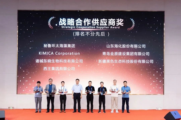 青島明月海藻集團黨委書記、董事局主席張國防為“戰略合作供應商獎”獲獎者頒獎