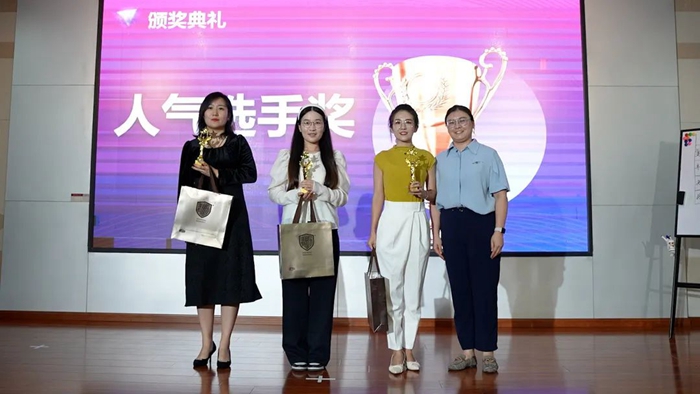 明月愛熙總經(jīng)理冷雪(右一)為人氣選手獎(jiǎng)?lì)C獎(jiǎng)