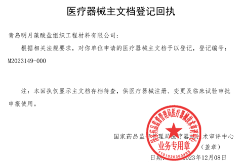 截至目前已有313家企業(yè)在器審中心進(jìn)行了主文檔登記,我公司為首家藻酸鹽類醫(yī)療器械原料主文檔登記企業(yè)。主文檔登記公示后,使醫(yī)療器械生產(chǎn)企業(yè)能方便的獲悉我公司的生產(chǎn)能力,擴(kuò)大了在醫(yī)療器械原料領(lǐng)域的影響力。