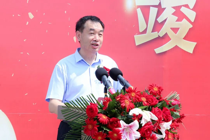 江蘇省大豐港區委常委、大豐港經濟開發區黨工委書記、管委會主任黃同城,青島明月海藻集團董事局主席張國防,青島明月安欣營養科技有限公司總經理杜可振出席儀式并致辭。