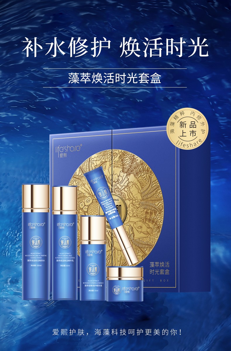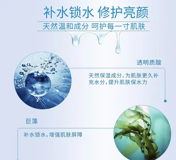 承襲深海護膚之靈感,采集純凈海藻精華,糅合天然草本精萃,相輔相融,深入釋放活性補水成分,形成天然肌膚強韌屏障,滴滴海藻精萃凝聚更多美膚成分,為肌膚帶來上乘美膚盛宴。