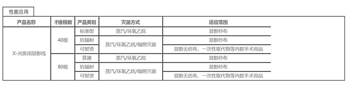 “潔靈絲”X-光醫(yī)用顯影線(xiàn)是通過(guò)采用先進(jìn)的材料加工技術(shù)制備成型,由若干高分子長(zhǎng)絲包覆后形成,其粗細(xì)度可根據(jù)用戶(hù)需要進(jìn)行調(diào)整。本公司生產(chǎn)的“X-光醫(yī)用顯影線(xiàn)”的性能及加工工藝嚴(yán)格按照歐盟標(biāo)準(zhǔn),產(chǎn)品具有很高的柔軟性及很好的物理機(jī)械性能,各項(xiàng)指標(biāo)達(dá)到國(guó)際先進(jìn)水平,可以與棉紗線(xiàn)一起織造后制備X-光顯影紗布,也可以通過(guò)加熱或超聲波方法與各種醫(yī)用織物粘合。